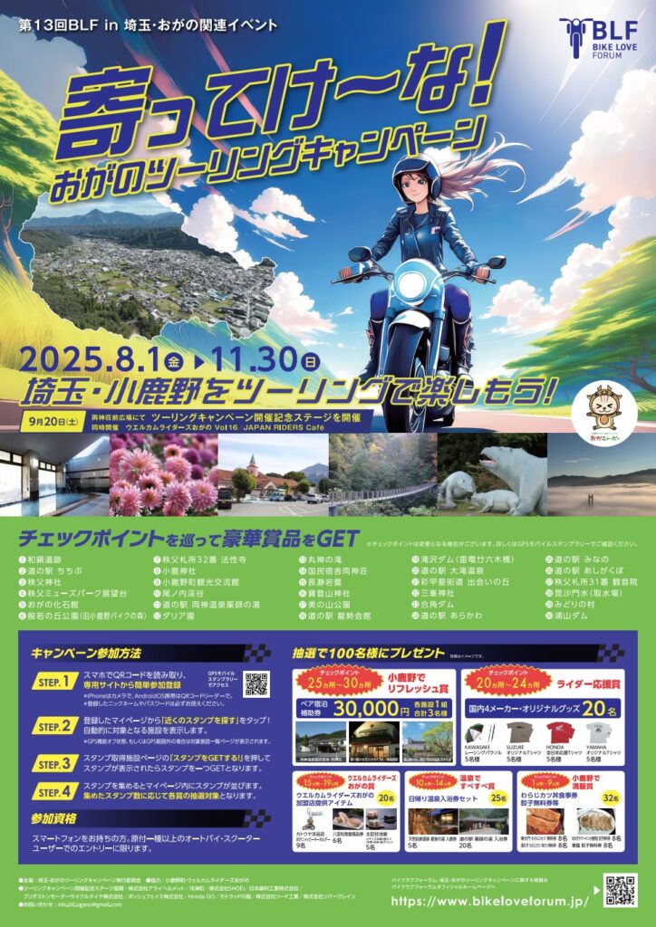 - 寄ってけ~な!おがのツーリングキャンペーンエントリーサイト: https://mobicp.jp/blf-touring2025/