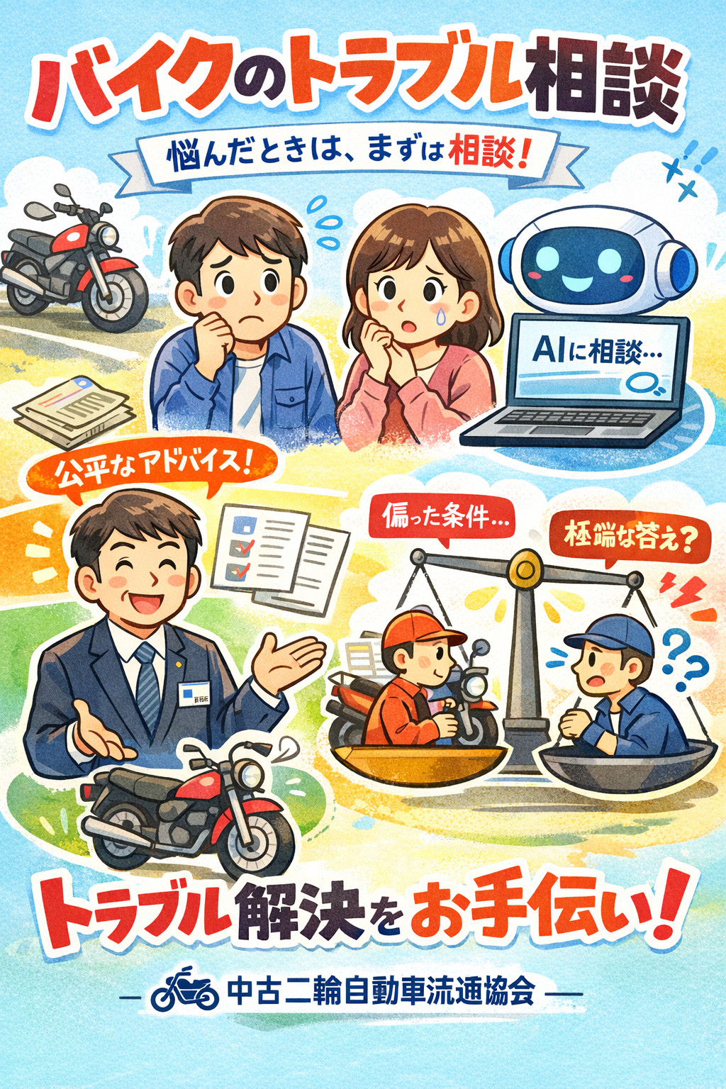 中古バイク購入の不安、ひとりで悩まないで!中古二輪自動車流通協会があなたの味方です