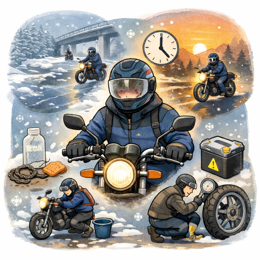 冬のバイクは、空気が澄んで気持ちがいい反面、路面・気温・車体コンディシ...