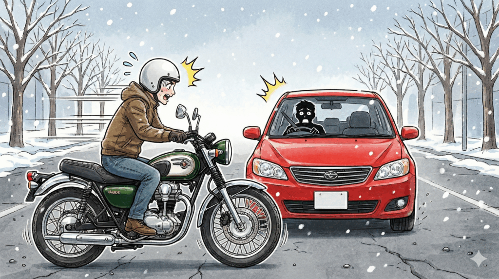 → 交差点では一拍置いて確認、車間は普段よりさらに広めに。
